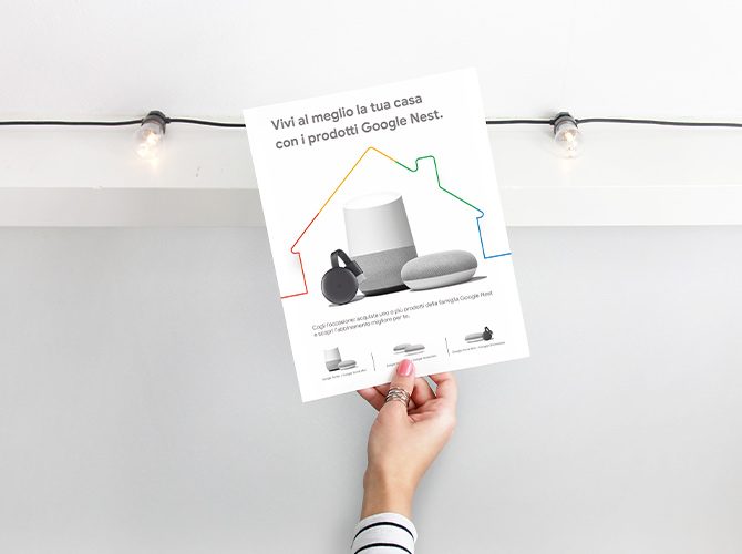 Ci occupiamo della parte BTL: dall’ ideazione allo sviluppo, passando per le diverse declinazioni. Realizziamo i materiali promozionali per supportare le vendite di tutti i prodotti Google.